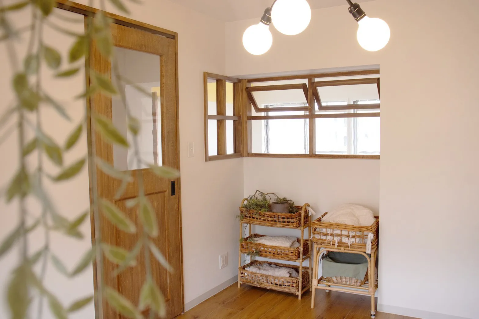 リビングとのつながりを感じられるようにし、視線が抜けることで空間を広く見せています。
