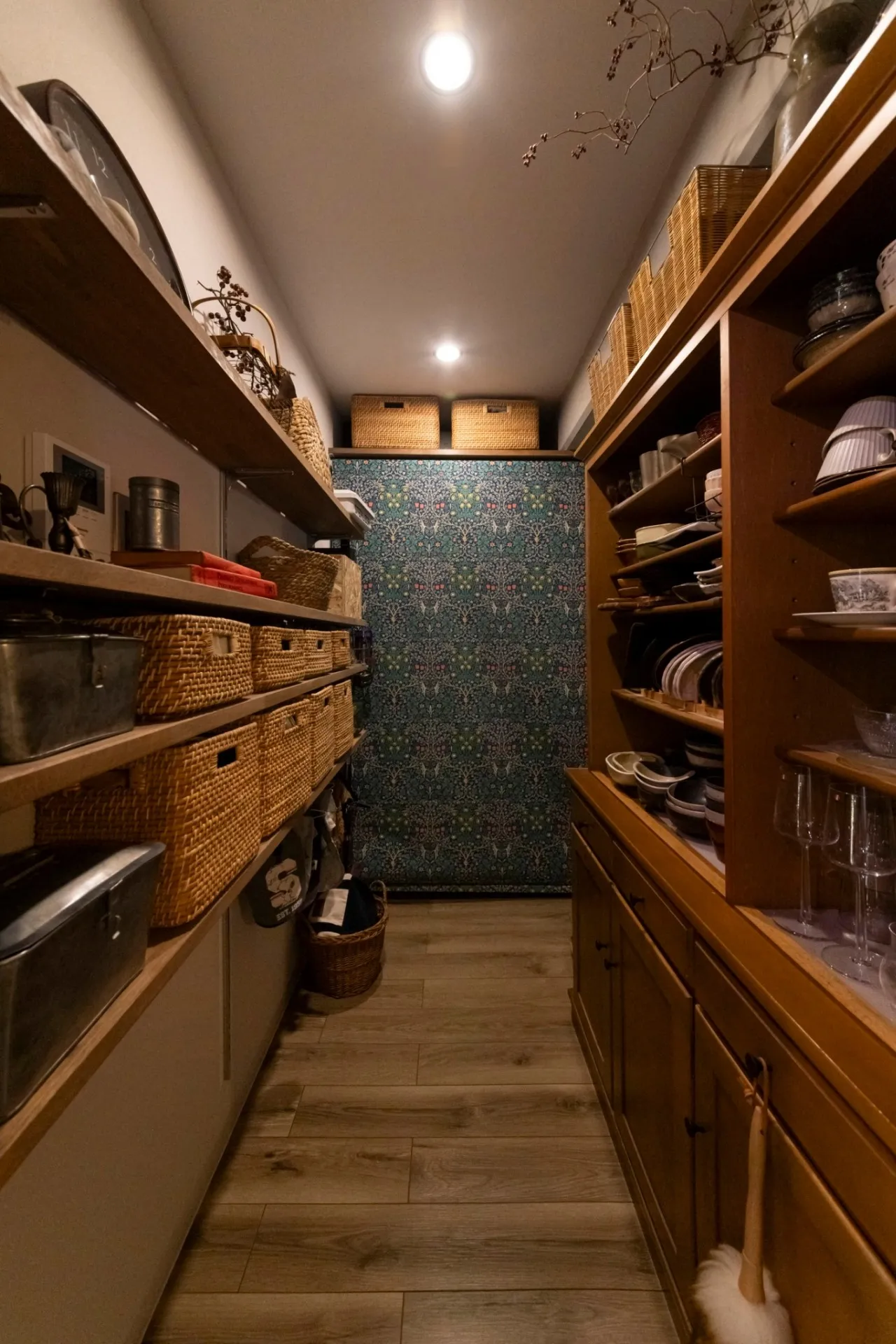 新設したウォークインクローゼットは、食器や食品のストックに加えて来客用の布団も収納できるマルチな収納に。